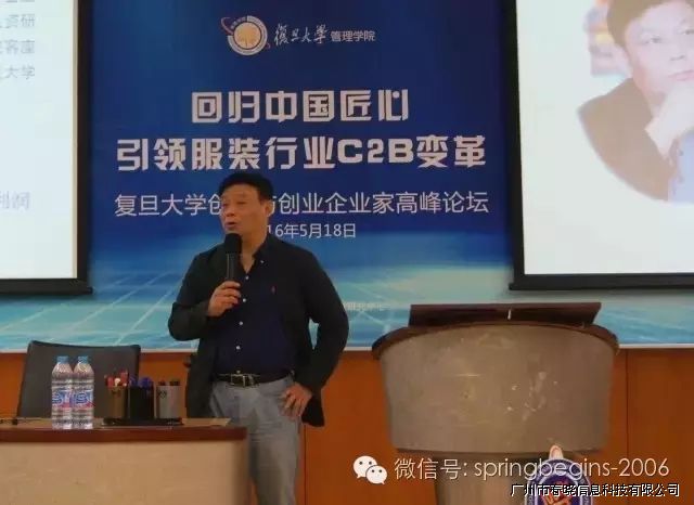 5月18日下午13:00,万众期待的“引领服装行业C2B变革,创新与创业企业家高峰论坛”在复旦大学管理学院如期召开并于下午17:30完美落幕,本次论坛由复旦大学管理学院主办、广州28圈信息科技有限公司协助举办,会场内座无虚席,200余人到场参会。论坛邀请了多位资深学者、成功企业家等重磅嘉宾纯干货主题演讲,受到广泛好评,会议进行中掌声持续响起。